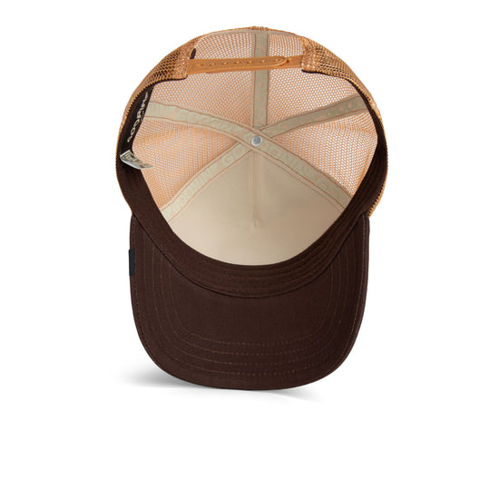 Die Cap kombiniert ein camelbraunes Frontpanel mit braunem Schirm für einen starken Naturton-Kontrast. Das luftige Mesh am Hinterkopf sorgt für angenehme Frische – perfekt für deinen urbanen Dschungel. Dank Snapback-Verschluss sitzt die Goorin Bros Cap immer genau richtig – beim Chillen, beim Siegen, beim Herrschen.
