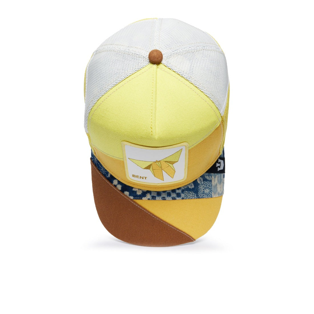 Diese gelbe Goorin Bros Cap aus der Farmigami-Kollektion besticht durch weiße und braune Akzente sowie einen Patch mit einem origami-Schmetterling und dem Schriftzug "BENT". Holen Sie sich mit dieser einzigartigen Cap einen Hauch von japanischer Tradition in Ihren Kleiderschrank und geben Sie Ihrem Stil einen besonderen Touch.