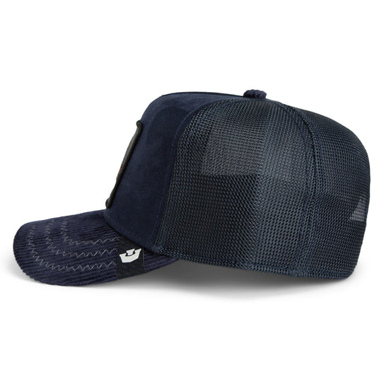 Stil mit Tiefgang – die Shadow Remix Cap ist für alle, die lieber zuhören als schreien und mit einem Blick mehr sagen als andere mit 100 Posts. 🐾🧠 Der dunkelblaue Samt trifft auf Cord-Schirm mit Statement-Stitching, während der schwarze Hund auf dem Patch den Ton angibt: ruhig, wachsam, souverän. Für stille Leader, Schattenkrieger und elegante Einzelgänger mit Haltung. Diese Cap bellt nicht – sie setzt Zeichen. 🌒🧢