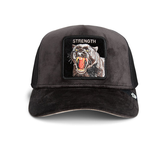 This Goorin cap doesn't shout loudly—it snarls with style. Featuring a velvety velour look in dark anthracite and a majestic panther on the front patch, it's more than just an accessory: It's a clear statement of raw energy and uncompromising elegance.