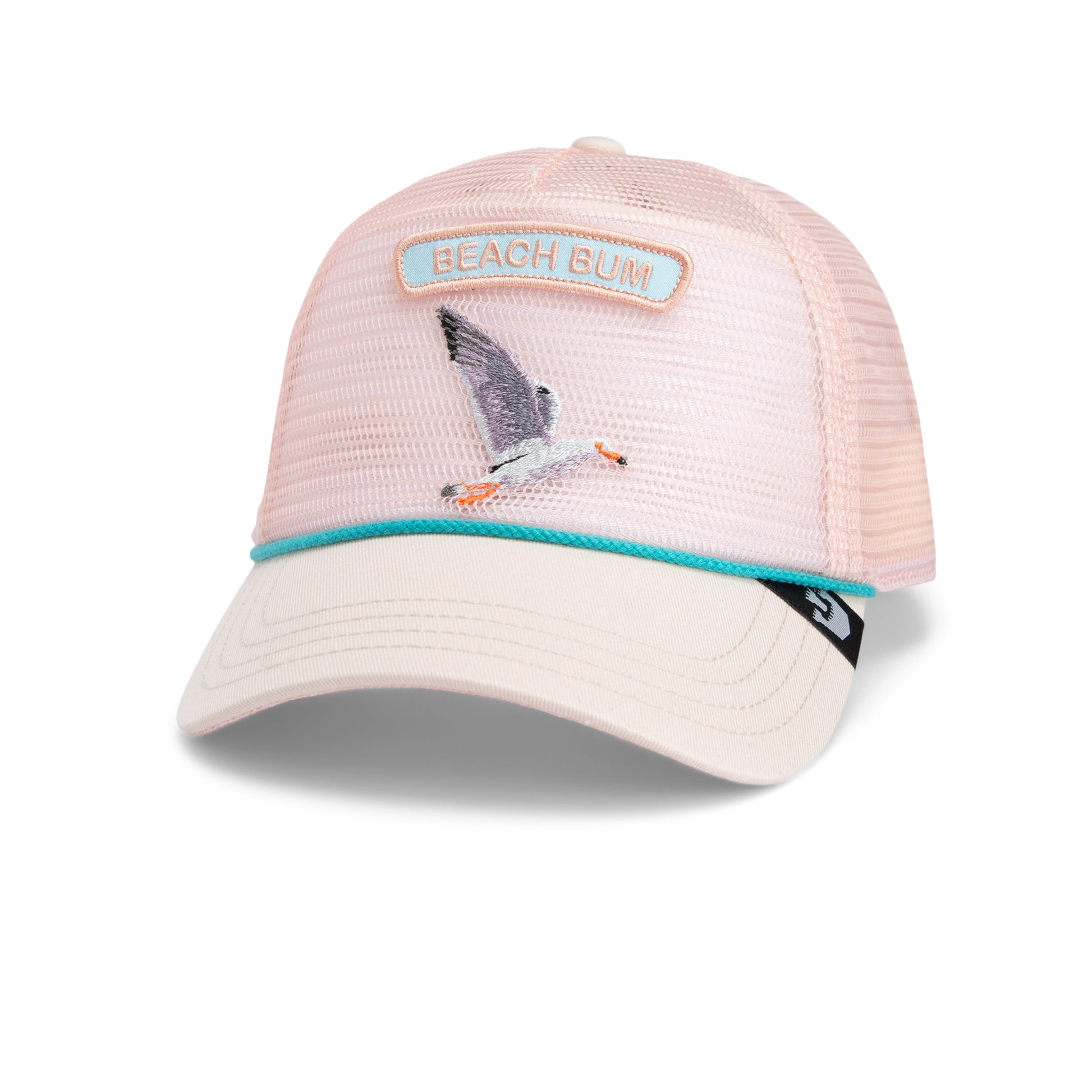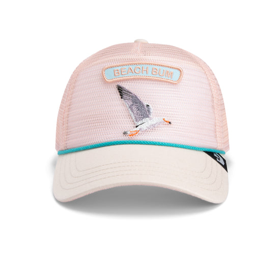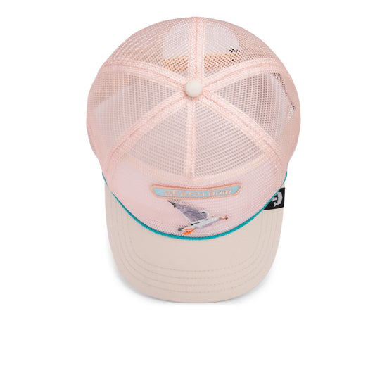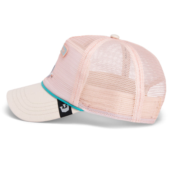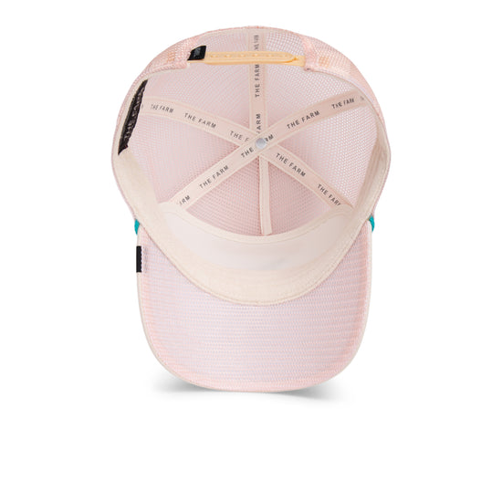 With a soft pink front panel, turquoise edging, and a sand-colored visor, this cap is perfect for any sunset—whether at the beach or in the city. The breathable mesh back and snapback closure ensure a comfortable fit and a cool look—ready for the next breeze.