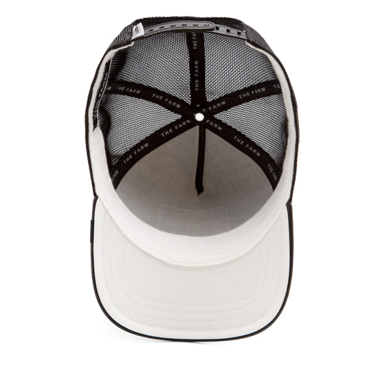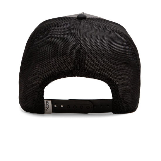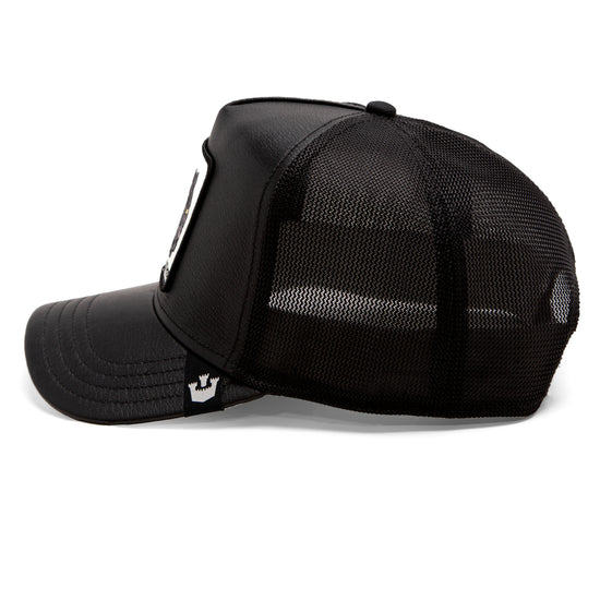 Das hochwertig wirkende, schwarze Kunstleder verleiht dem Design eine starke Streetwear-Note mit Premium-Attitüde. Ergänzt wird das Ganze durch ein luftiges Mesh auf der Rückseite, das auch bei heißem Kopf cool bleiben lässt. Der Snapback-Verschluss garantiert individuellen Sitz, während das schwarz-weiße Farbschema absolute Vielseitigkeit schafft – ob zur Lederjacke, Oversized-Hoodie oder cleanem Street-Style.