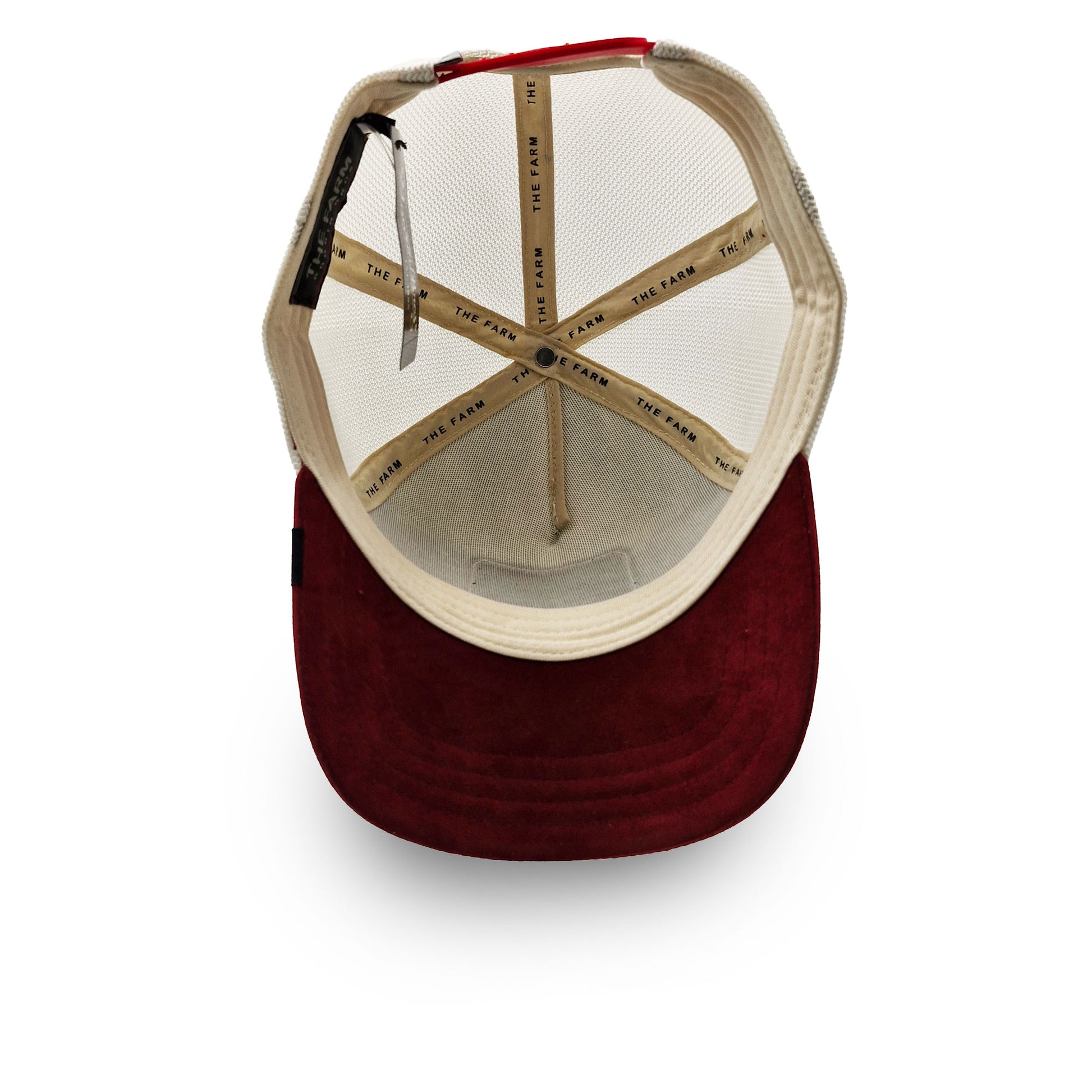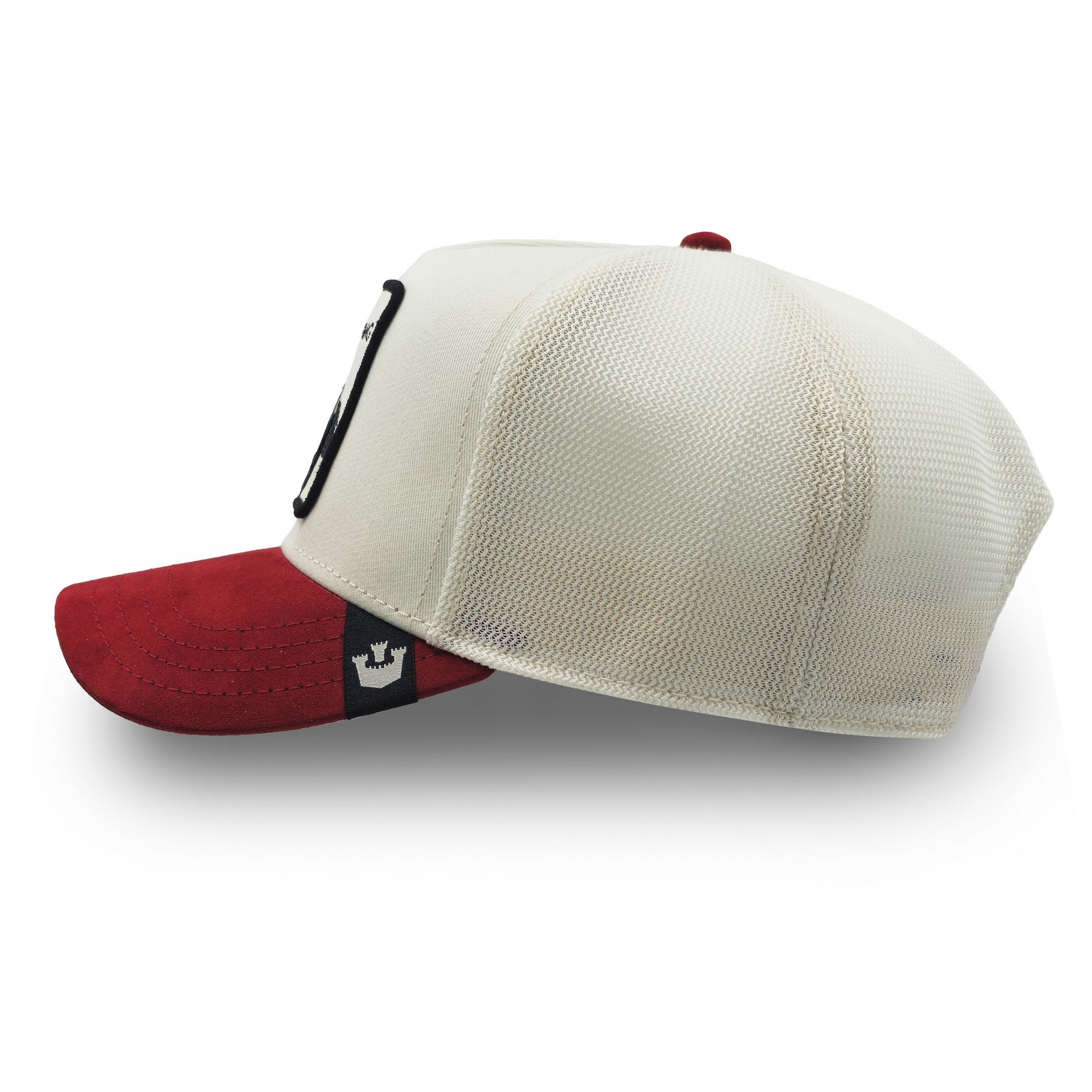 Das beigefarbene Frontpanel verleiht der Cap einen cleanen, urbanen Look, während der rote Suede-Schirm für einen eleganten Kontrast sorgt. Hinten sorgt das atmungsaktive Mesh in Beige für Komfort, auch wenn dein Alltag dich über staubige Trails oder durch Großstadtstraßen führt. Der Snapback-Verschluss macht das Anpassen easy – wie gemacht für freiheitsliebende Köpfe.